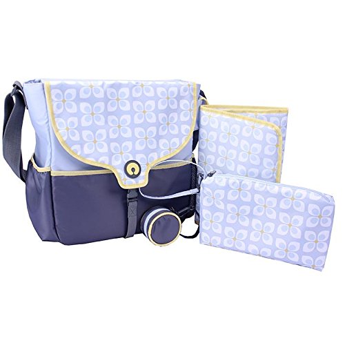 Flap closure;Includes changing pad, wipe case and wristlet;Two side pockets with elastic binding;Size: 13.5 x 14.5W x 5D;BPA free and phthalate free