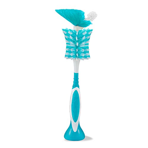 Integrated nipple brush makes cleaning a breeze;BPA-free brush stands when not in use;Dishwasher safe, top rack only;Comfort grip handle;Works with most major bottle brands;Stands when not in use