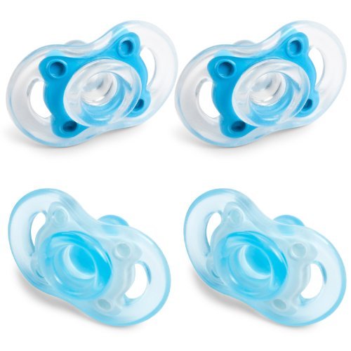 - Born Free Bliss Button Pacifier 0-6 Months - 4 Pack (Blue) by BornFree