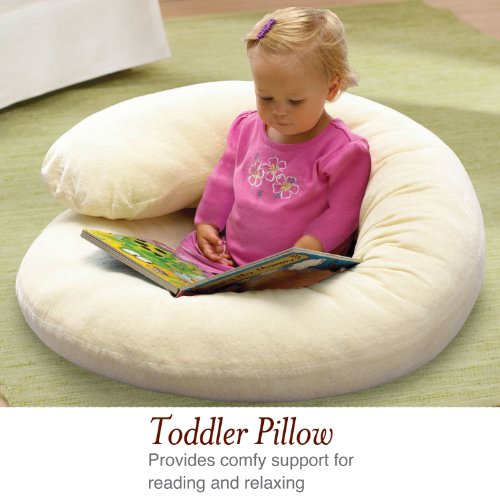 Natural shape contours body to help mom sleep better during pregnancy;Secondary use as a nursing pillow post partum;Toddlers love to cuddle this pillow when relaxing;100% natural cotton cover is machine washable;Additional slip covers sold separately for different design options