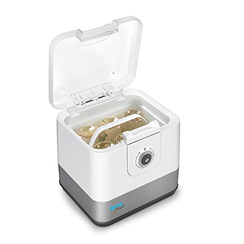 Born Free Tru-Clean Sterilizing System Born Free's Tru-Clean Sterilizing System is designed to kill household bacteria. Visual countdown feature lets you know where you are in the sterilization or cool-down process. This all-in 1 design includes: - Sterilizer - Dishwasher Basket - Drying Rack Features: - Holds 6 complete bottles plus accessories - Convenient one-handed lid releaseinged lid safely vents steam and keeps counters dry; sterilizer is cool to the touch even during cycle; blue indicators let you know when you are in cool down stage; stainless steel matches kitchen decor; average stertilzing time 8 minutes; BPA Free