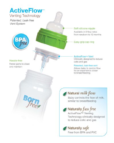 Naturally Fuss Free, ActiveFlow??Venting Technology clinically designed to reduce colic symptoms;Naturally safe, durable bottles are free from BPA and PVC;These bottles are plastic and not glass