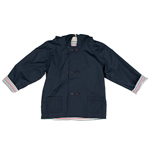 ブティックコレクションの従来のジャケット/レインコート幼児と幼児のためです。このクラシックピースをたくさん提供するそのスタイルと職人技。ジャケットには、可愛い海軍ファブリックとのひもはフードとストライプコットン裏地。他の美しい特徴は、洗練されたボタンは簡単に開き、閉じることができます。これは様々な機会に最適で、洗濯機で洗えます。