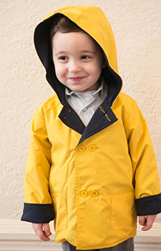 ブティックコレクションの従来のジャケット/レインコート幼児と幼児のためです。このクラシックピースをたくさん提供するそのスタイルと職人技。フードとネイビーにはコットン裏地で作られてかわいいイエロー生地と詳細。他の美しい特徴は、洗練されたボタンは簡単に開き、閉じることができます。これは様々な機会に最適で、洗濯機で洗えます。