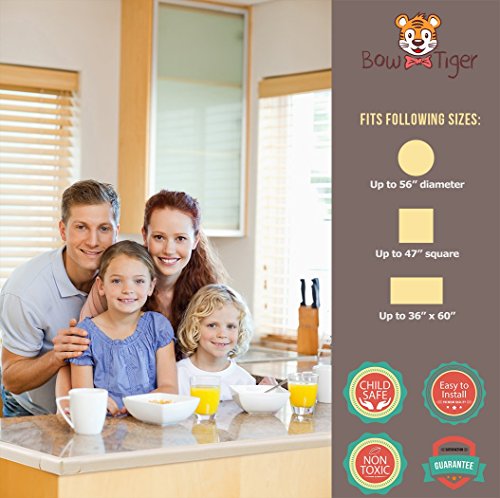 - FITS MULTIPLE USES - fits all standard size tables: round table up to 56" diameter, square table up to 47", square and rectangle table up to 36" x 60"; Ideal on coffee tables, dinner tables, office desks, kitchen countertops, TV cabinets, chests, shelves, stairs, fireplaces, hearths, walls, fish tanks and more.