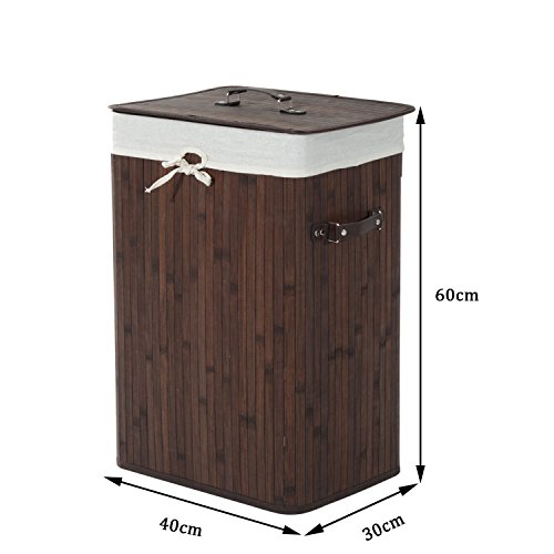 長方形竹洗濯籠洗濯バスケット布ストレージビンオーガナイザー蓋(ブラウンカラー)