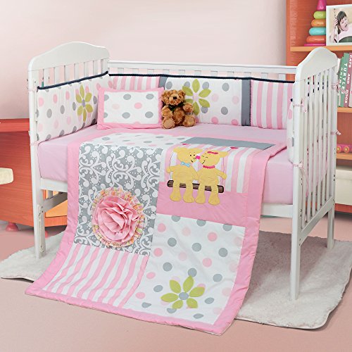 Brandream Baby Nursery Crib Bedding Set for Girls withピンクフローラルCartoon Polka Dotベビーシャワー、理想的なギフト、7pcs