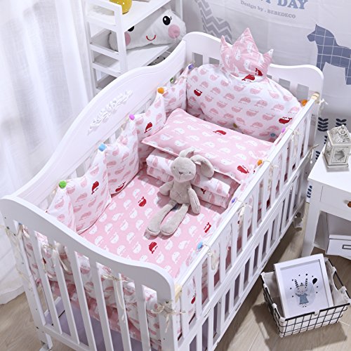 Brandream Crib Bedding Set withバンパーfor a新生児赤ちゃん女の子または少年、7pcs