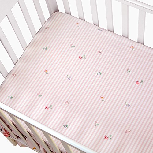 100 %コットンCribフィットシートピンク花柄ベビーベッドシートヴィンテージBaby Girl FittedベビーベッドシートShabby Chic Crib bedding-柔らかく、通気性、耐久性&低刺激性ベビーベッドマットレスシートby Brandream