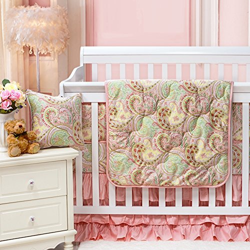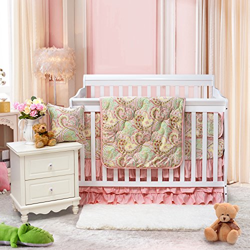 Brandreamペイズリーベビーbedding-cribキルトガールズ、エジプト綿100 %ソフト豪華な花柄子供部屋ベッドセット、耐久性通気性&低刺激性、ピンク