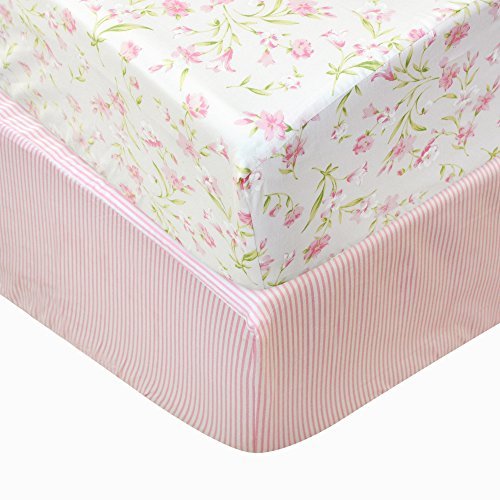 Brandream Sweet Pink Floral Crib Sheet Stripe Fitted Baby Girl Crib Sheet Ideal Baby Shower Gift 2 Pack [並行輸入品]