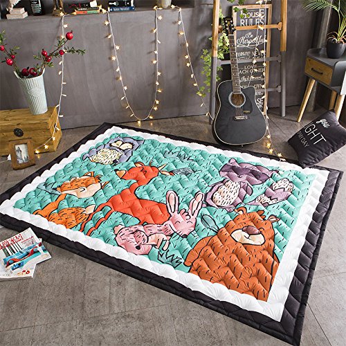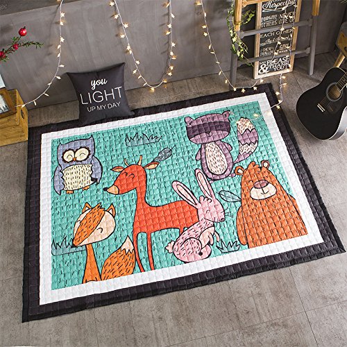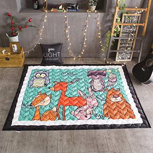 Brandream厚みカーペット子供ベビーキッズ遊びマットベビークロールマットノンスリップ滑り止めPlay Mat Kids Teepeeマット、象、鳥、ブルー 1" Thick