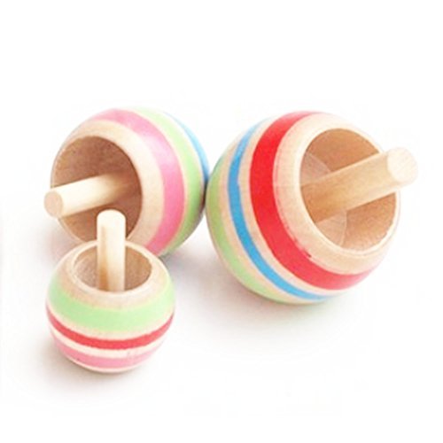 BreaDeep 3pcs Colorful Wooden Spinning Top Peg-top Children Kids Educational Funny Toys 3 Sizes [並行輸入品]