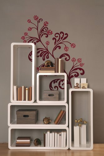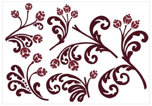 This rich and lucious red floral trail applique is both artistic and stylized. Modern in nature with an abstract feel this wall decal will add a sense of chic to any d?cor. This applique comes on a 28" x 39" sheet and has 6 total pieces.