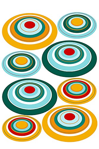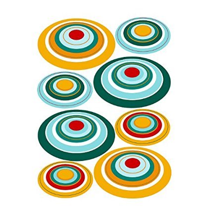 Luminous wall Appliques of circular orbits to decorate a kid's room. These decals create a space-age decor theme, suggestive of UFOs or contemporary art. Your Orbit Appliques comes on a 19" x 27" sheet and contains 40 total pieces.