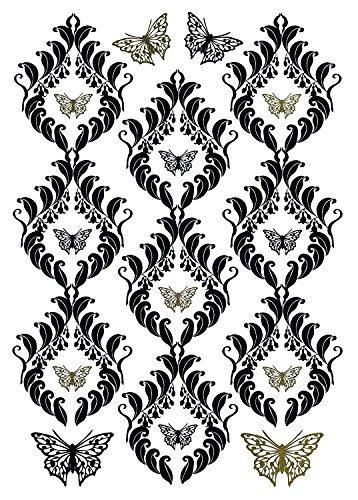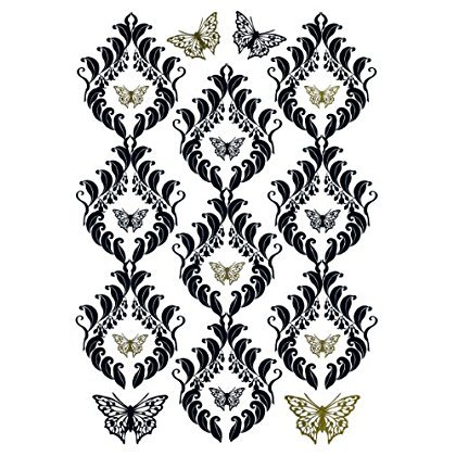 This applique featuring a lovely damask and butterfly pattern will brighten up any room. Named Papillon this applique comes with 7 pieces and on a 19" by 27" sheet.