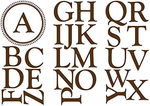 Repositionable and always removable. WPM99283 Features: -Durham espresso brown monogram and alphabet decal set.-Contains a single monogram frame and each letter of the alphabet.-Monograms are classic and chic.-Easy to install, just peel and stick.-Repositionable and removable.-Safe for walls, no sticky residue. Includes: -Includes three sheets and 27 pieces.