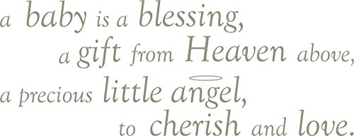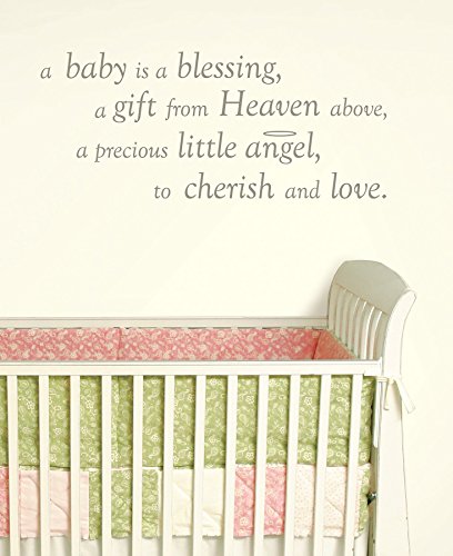 17.25 -Inch Height by 39-Inch Width. Just peel and stick. Safe for walls, leaves no sticky residue. Mix and match to create your own designs, monograms and phrases. Repositionable and always removable. A baby is a blessing wall decal brings love to the walls of your nursery! this sweet wall quote is a darling poem to cherish, and a wonderful sentiment for your baby. A baby is a blessing wall wishes come on a single 17 1/4in x 39in sheet and contains 8 total pieces. Wallpops are totally removable, and repositioned.