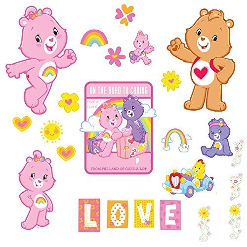 This fun Care Bears wall applique set will melt your heart with sheer cuteness. This appliques feature the word love in big bright letters, with a the timeless Care Bears and all their wholesome charm. These Appliques come on (4) 10' x 16' sheets and are removeable and reuseable.