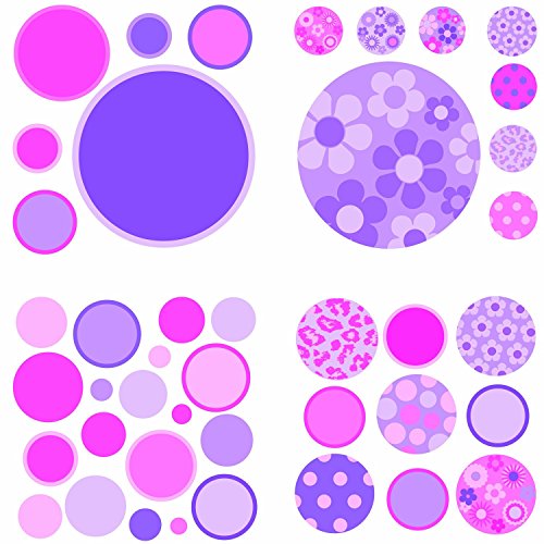 Lots of dots, big and small, pink and purple, this decal will dot your home is specs of charm. Im various sizes and various shades of pink and purple these fun colors will spice up your home and wall. Gone Dotty Pink and Purple WallPops are various sizes and come on (4) 13' x 13' sheets.