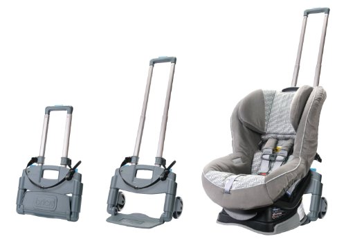 The BRICA Roll 'n Go Car Seat Transporter is an easy way to convert your car seat to an airport stroller. The universal attachment method quickly and securely attaches virtually all convertible and forward facing car seats. The fold-in wheels and multi-position telescoping handle folds down flat for easy storage in tight overhead bins and your closet. High quality materials such as aircraft grade aluminum, reinforced nylon and premium in-line skate wheels ensure a smooth ride for parent and child.