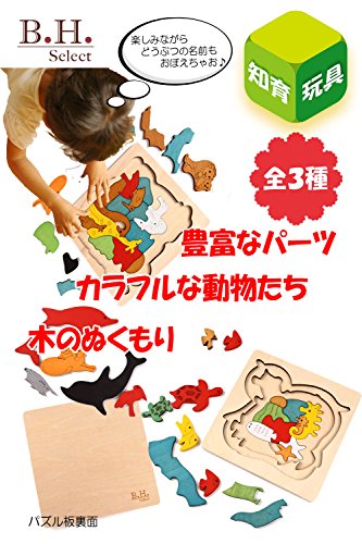 B.H. Select 木製多層パズル 知育玩具 幼児向け (Cセット:イルカ+アフリカ)