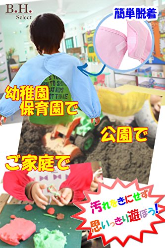 B.H. Select ベビー エプロン 長袖 防水 (ハンドタオルセット) お食事 お食事練習 お絵描き 粘土遊び などに最適 (ピンク(りんご))BH53-7