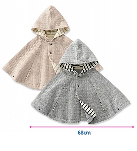 B.H. Select フード付き ベビーポンチョ ニットキルト生地 アウター ベビーケープ お出かけ 出産祝い プレゼント に最適 (Sサイズ(70-80 グレー)) BH65-1