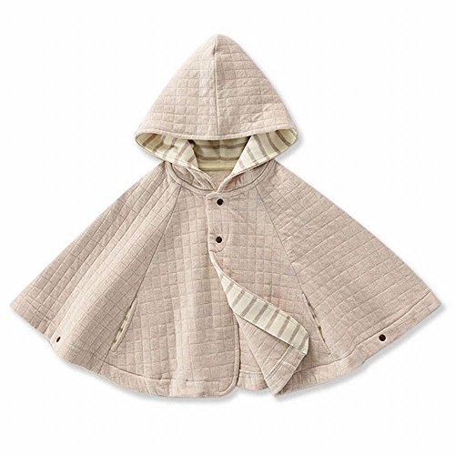 B.H. Select フード付き ベビーポンチョ ニットキルト生地 アウター ベビーケープ お出かけ 出産祝い プレゼント に最適 (Sサイズ(70-80 ベージュ)) BH65-2