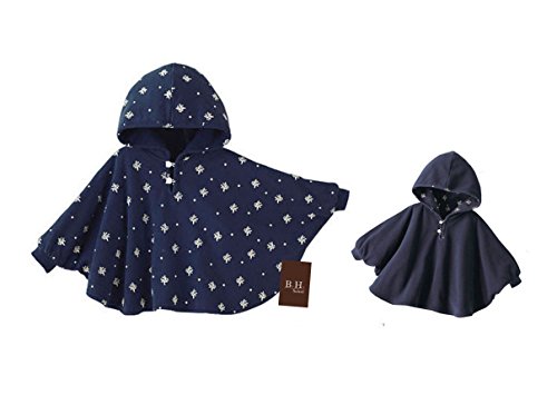 B.H. Select ベビー キッズ フード 付き パーカー ポンチョ 2WAY リバーシブル 女の子 男の子 出産祝い 誕生日 ギフト プレゼント (ネービー/ネイビー Mサイズ(90-100cm)) BH71-2