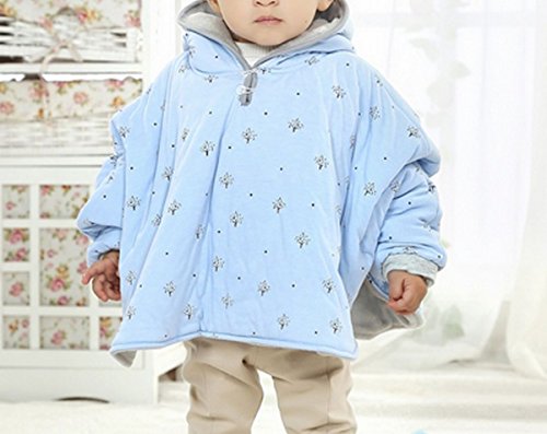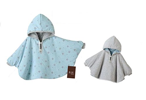 B.H. Select ベビー キッズ フード 付き パーカー ポンチョ 2WAY リバーシブル 女の子 男の子 出産祝い 誕生日 ギフト プレゼント (ブルー/グレー Mサイズ(90-100cm)) BH71-4