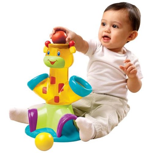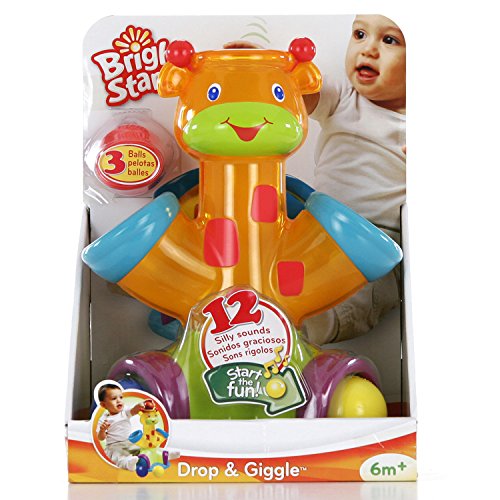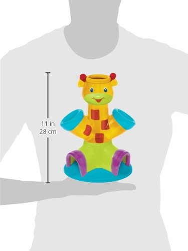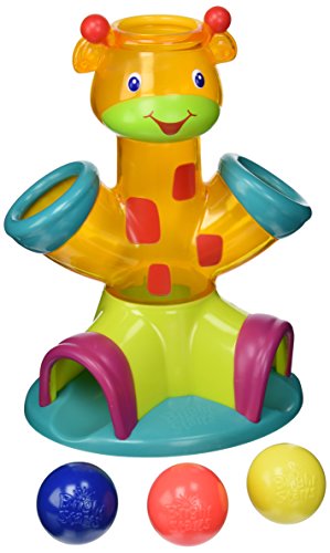 Drop balls in head and hands and watch them tumble out through translucent midsection, Play activates 12 silly sounds, Convenient twist and store ball holder, Includes 4 brightly colored easy to grasp balls, 6 months +