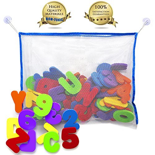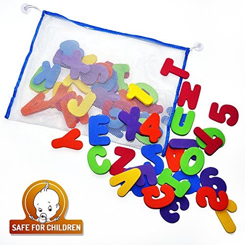 ??PERFECT GIFT IDEA - Brilliant Babyz 36 Bath Foam Letters and Numbers with large (18X14) High quality mesh bag is our client's favorite BEST SELLER bath toy, perfect as baby shower gift and registry gift.;??? 100% BPA FREE, LEAD FREE and PHTHALATE FREE - our product is Eco-Friendly, perfect for preschool, pre-kindergarten and toddlers. When it comes to your children - don't compromise! OUR PRODUCT IS THE BEST YOU CAN FIND!!!;??? EDUCATIONAL TOY; Make bath time to fun learning time - teach your children to count and spell , teach them different colors, in the most fun way. ??? PREVENT MOLD AND MILDEW; the high quality Mesh Bag Net allows toys to dry quickly.;??? KEEP YOUR BATHROOM TIDY; with our PREMIUM BATH ORGANIZER your children will love collecting their toys! ??? SUPERIOR SUCTION CUPS; Strong suction cups keep the toy organizer from falling and allow it to stick to any surface like bath tiles and glass.;??? 100% LIFETIME SATISFACTION GUARANTEES + FREE TODDLER CARE GUIDE E-BOOK WITH EACH ORDER AS A GIFT!!! ??? Try It and You Will Love It!!