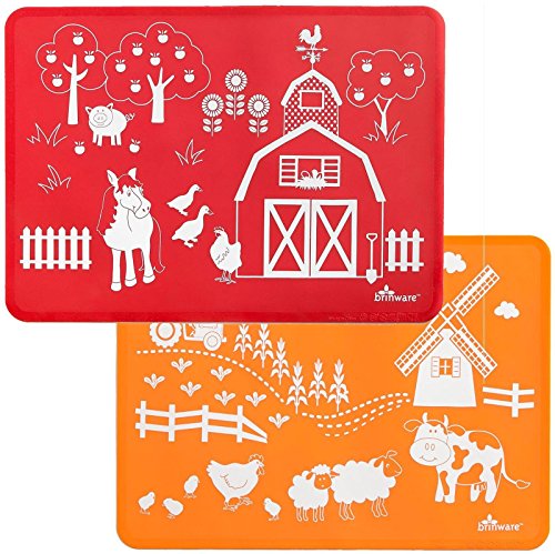 Brinware is vibrant tableware that is a feast for young eyes and addresses the growing demand for safe alternatives to plastic;Brinware's durable and colorful silicone placemats combine fun and function;Mats are slip-resistant so that they stay in place during use and they roll up so they can be taken anywhere that you want your child to have a clean eating surface;15W x 11H placemats come in colorful pairs perfect for mixing and matching with your Brinware dishware and they are dishwasher safe for easy, thorough cleaning;The fun prints encourage social interaction during mealtime, too!