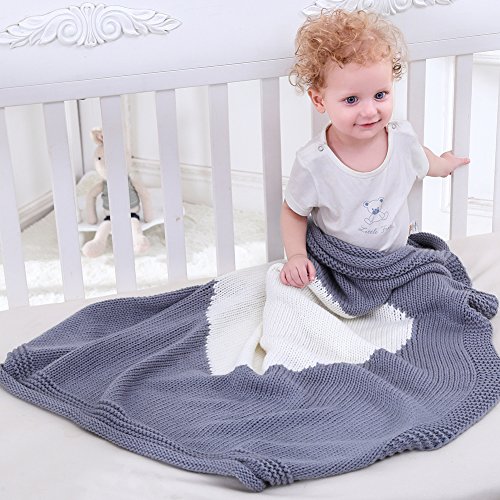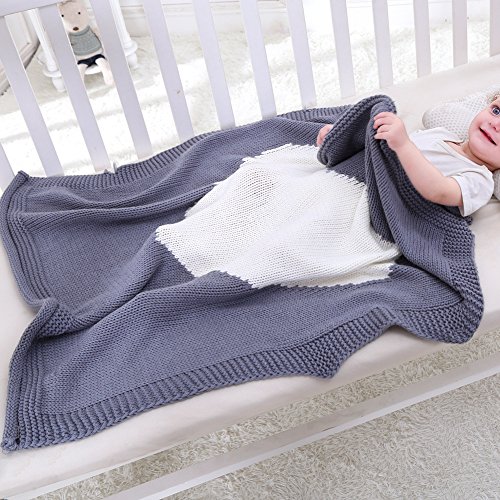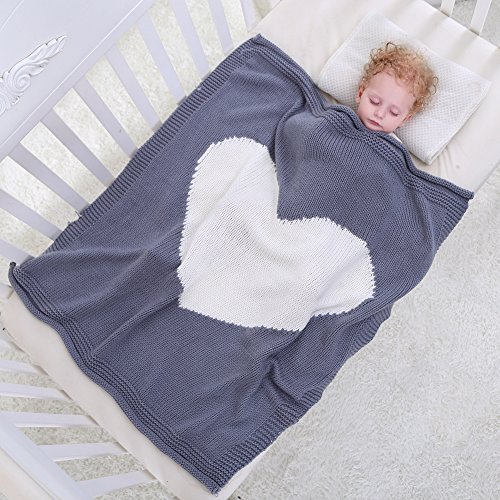 ベビーブランケット かわいいハート形編みブランケット トベビー遊びブランケット Broadroot 0~6歳適子供用ブランケット (グレイ)