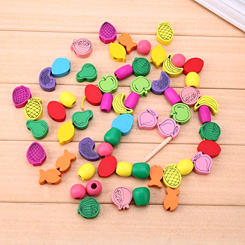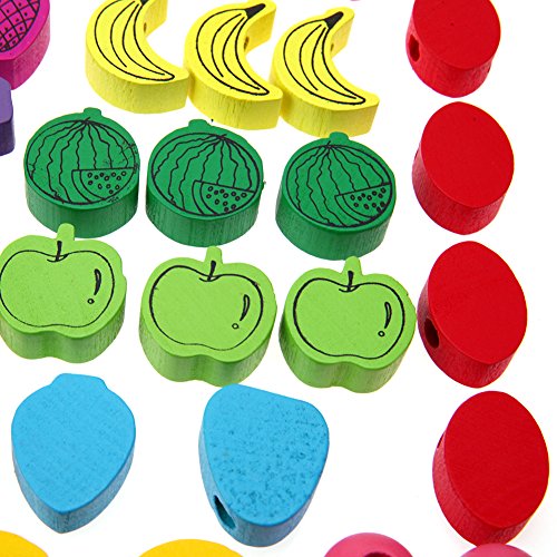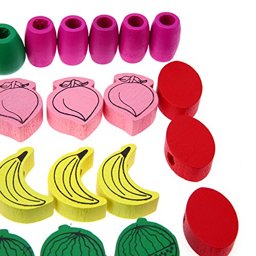 木製 知育玩具 赤ちゃん おもちゃ 紐通し ボビンひもとおし 木のおもちゃ 知育玩具セット 動物/果物など Broadroot (B)