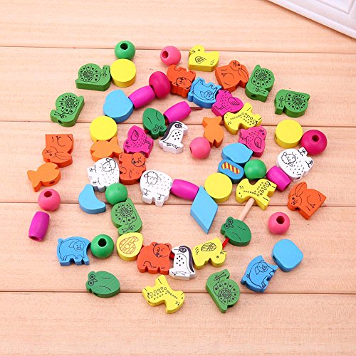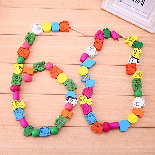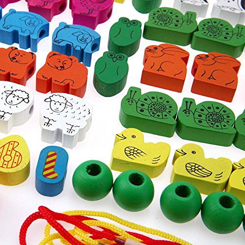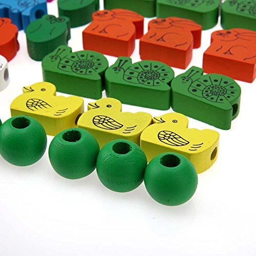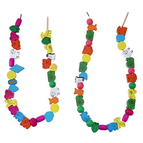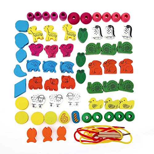 • 木製の知育玩具、カラフルな木製ビーズの紐通し玩具です。
