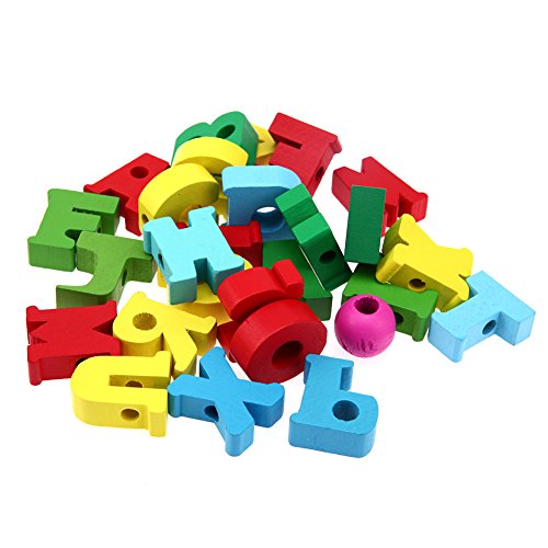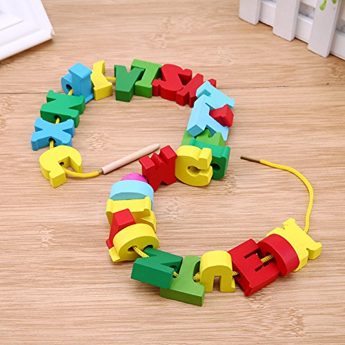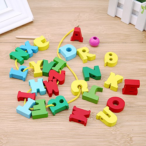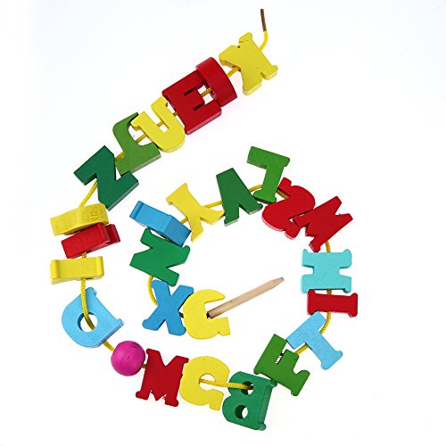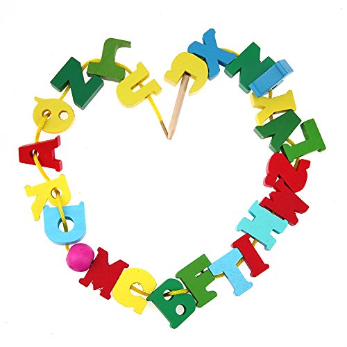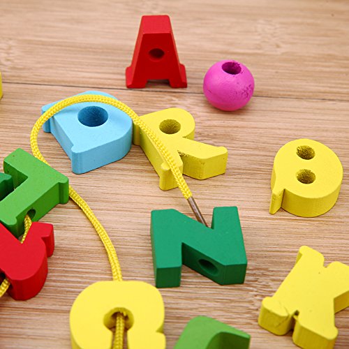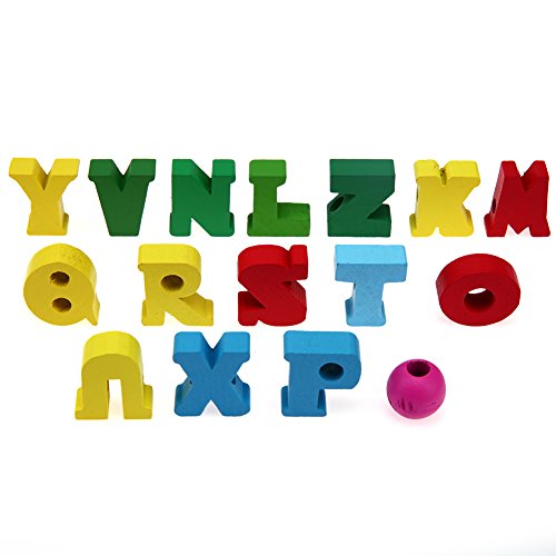 木製ビーズ 知育玩具 赤ちゃん おもちゃ 紐通し ボビンひもとおし 木のおもちゃ 知育玩具 英字アルファベット/数字/動物/果物 Broadroot (英字アルファベット)