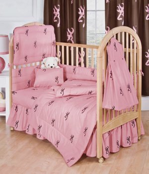 Pink Buckmark- 4 Piece Crib Set includes (Crib Fitted Sheet, Crib Bumper Pad, Crib Headboard Pad, and Crib Comforter)- Save Big By Bundling! by Browning