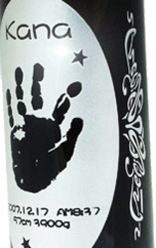 1本のワインボトルに浮き出る赤ちゃんのメモリアル 手に取った時の感動の仕上がり 高級感溢れる世界に1本しかないメモリアルです。 以前よりご要望の多かったワインボトルのメモリアルを 新しいデザインで登場しました。手型メモリアル・ボトル ★ご自宅用にギフト・プレゼント用に内祝い用にも最適です。★ ワインボトルも素材がガラスですので彫刻との相性もバッチリ!回りを彫っていく浮き彫り仕上げですから仕上がった文字の立体感はさわって頂くと良く分かります。●※彫刻の情報(デザイン・字体等)に関しましては、お申し込み後、弊社から送らせていただくBabyキット(御申込書と手形・足形作成キット)にご記入ください。