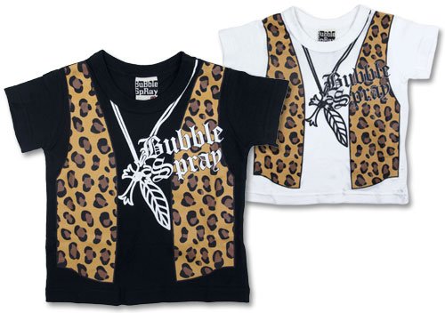 商品説明: バブルスプレーの豹柄ベストだまし絵半そでTシャツです 汗を吸収しやすく、ニット生地では定番の天竺使用 まるで半そでTの上に豹柄のベストを着用しているようなデザインがとってもGOOD お色はブラックとホワイトの2色展開です サイズ:80cm/90cm/95cm カラー:ブラック/ホワイト 素材:本体 綿100%リブ部分 綿95% ポリウレタン5% 原産国:中国