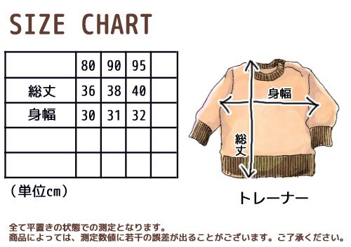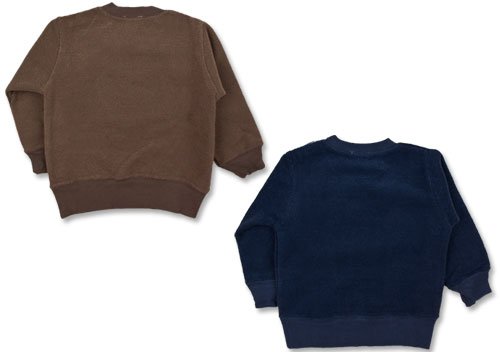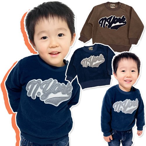 商品説明: バブルスプレーのアップリケ付きトレーナーです。 表面はループ状の糸で立体感があり、お肌に触れる面はブークレー起毛 左肩のスナップで着脱もラクラク 落ち着いたお色とモコモコの質感でシンプルかっこいい お胸には「ニューヨーク」という意味の英字アップリケ付き。 お色は本体ブラウン、本体ネイビーの2色展開です。 サイズ: 80cm/90cm/95cm カラー: 本体ブラウン/本体ネイビー 素材: 本体 ポリエステル100% リブ部分 綿95% ポリウレタン5% 原産国: 中国