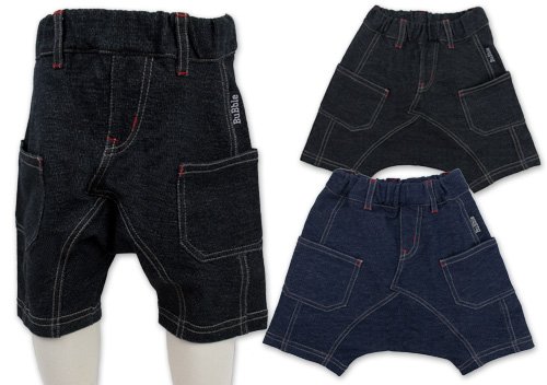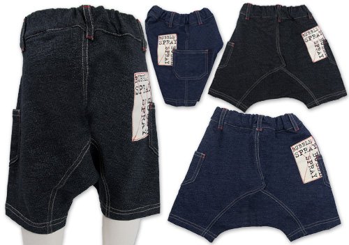 BuBble SpRayのデニムニットリメイク風ハーフパンツです。 見た目はデニムのようだけど、ニットならではの風合いストレッチ性を兼ねたデニムニット使用。 ウエスト部分はゴム入りだから着脱もラクラク☆ 股下部分がサルエルパンツのようなシルエット 両サイドの大きなポケットも印象的 お色はブラックとネイビーの2色展開です サイズ: 80/90/95 カラー: ブラック/ネイビー 素材: 本体・綿100% 原産国: 中国