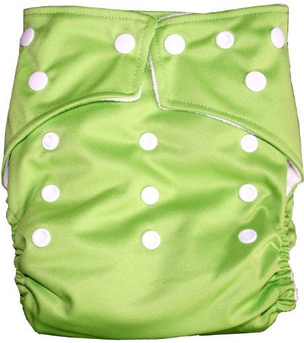 Bamboo CUTE SOLID Pocket Snaps Cloth Diaper/ Nappy with Hip Snaps with 2 Inserts - One Size - GREEN by BubuBibi