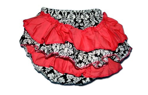 - BubuBibi Baby Cloth Diaper Cover/Ruffles/Petti Bloomer -WHITE AND BLACK DAMASK WITH PINK RUFFLES - SIZE LARGE by BubuBibi