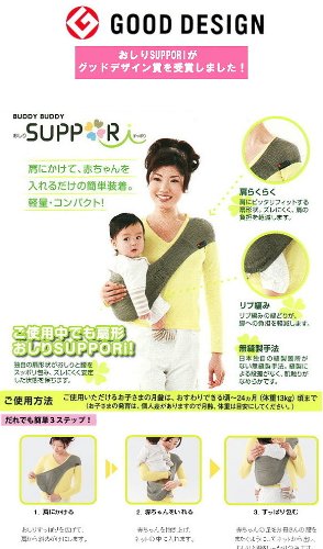 肩にかけて、赤ちゃんを入れるだけの簡単装着。独自の扇形がおしりと腰をすっぽり包み、やさしく肩にぴったりフィット。ずれにくく、肩への負担を軽減してくれます。おすわりできるようになってから、24ヶ月(体重13kg)頃までのお子さまに使っていただけます(日本製)
