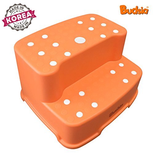 [Budsia] Baby Kids Extra-Wide & Tall Jumbo Step Stool with Removable Non-Slip Caps & Rubber Grips / Made in Korea / 5 Colors (Orange) by Budsia