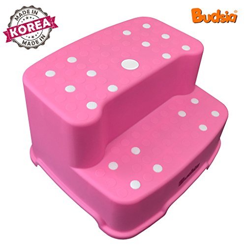 [Budsia] Baby Kids Extra-Wide & Tall Jumbo Step Stool with Removable Non-Slip Caps & Rubber Grips / Made in Korea / 5 Colors (Pink) by Budsia