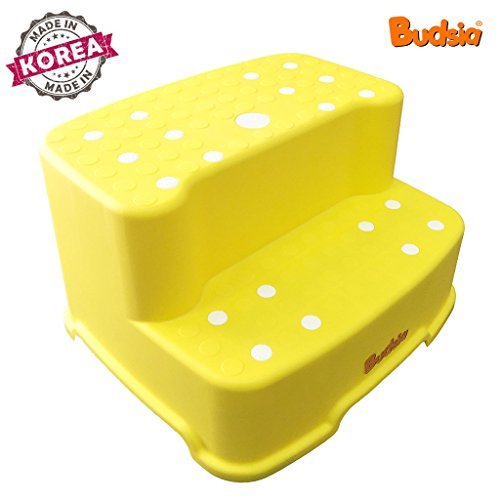 [Budsia] Baby Kids Extra-Wide & Tall Jumbo Step Stool with Removable Non-Slip Caps & Rubber Grips / Made in Korea / 5 Colors (Yellow) by Budsia