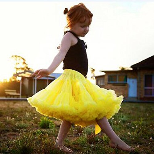 Buenos Ninos女児用純色二重チュールレースチュチュスカート お姫様スカート イエロー XL [並行輸入品]